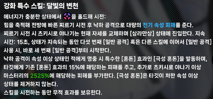 스킬 에너지가 없는 상태에서도 세번째 다섯번째 공격 후 특수 스킬 사용 시 버프가 활성화 되니 잊지 말고 버프를 챙깁시다.