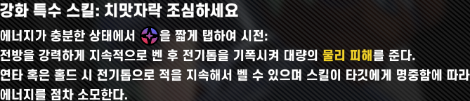 평타 전기톱 커맨드(3, 5 번째 홀드)만 잘 돌려주시면 됩니다.