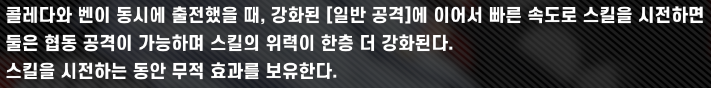 증가 효과는 자신의 초기 방어력의 40%에 해당 (방어력 아이템이 중요한 이유, 참 방어 클래스 스러운 설정), 벤이 [강화 특수 스킬] 시전 시 방어력에 15%+100pt에 해당하는 실드를 제공하기 때문에 1순위 콤보 다음으로 2순위로 강화 특수 스킬을 찍어줍니다.