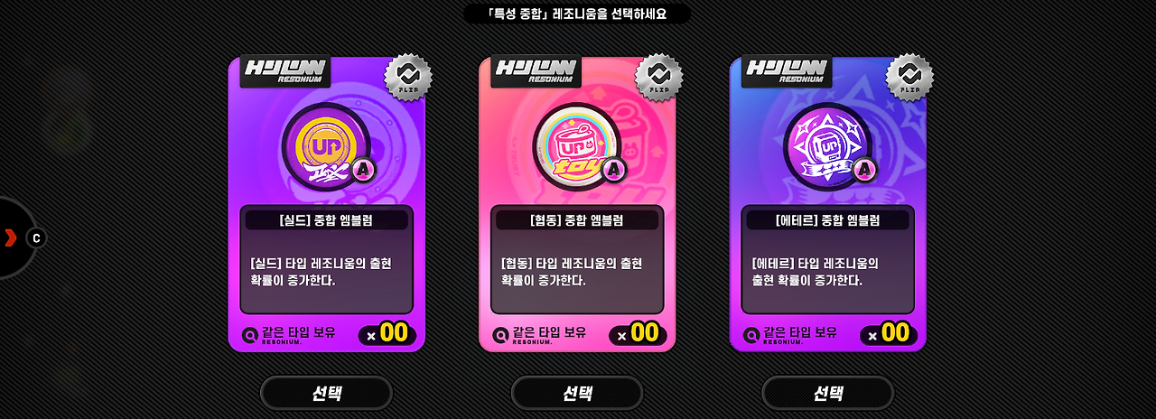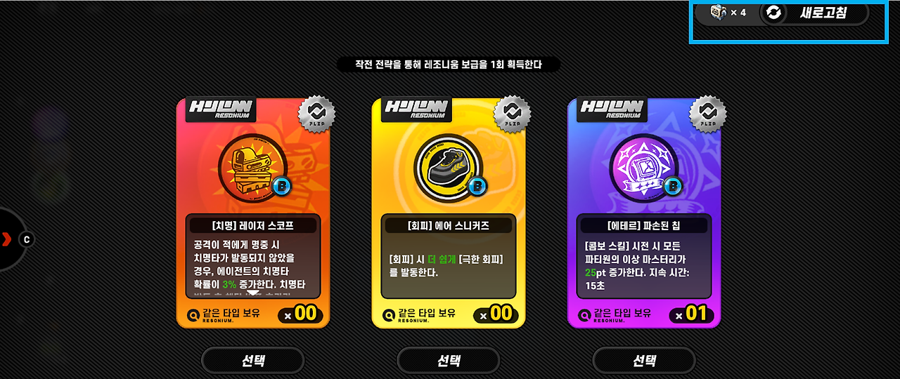 (여기서는 [치명], [회피], [에테르] 컨셉의 레조니움이 나왔네요.)