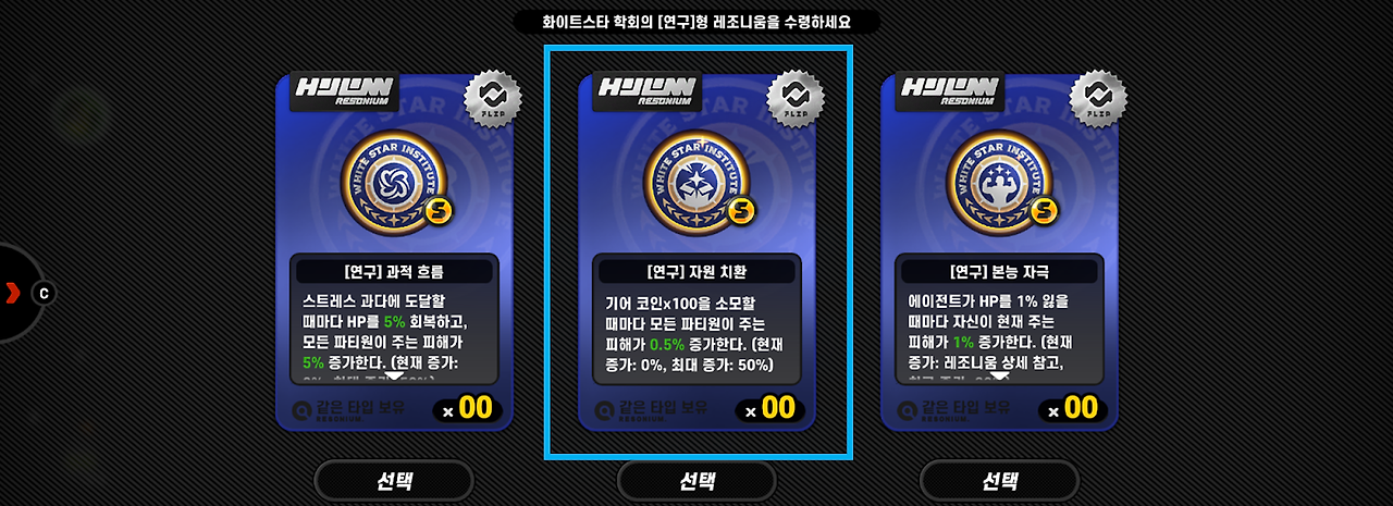 스테이지를 진행하면서 레조니움을 잘 보면서 필요한 것들을 모아주면 됩니다.
