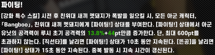 루시의 스킬은 강화 특수 스킬 보다는 특수 스킬(절반 에너지) 위주로 써주면서 교체를 통해 극딜을 넣어줍니다.