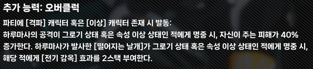DPS적으로 OP라고 하기에는 애매하지만 하루마사는 [격파], [이상] 파티에도 조합이 가능한 매우 높은 유틸성을 갖고 있는 캐릭터입니다.