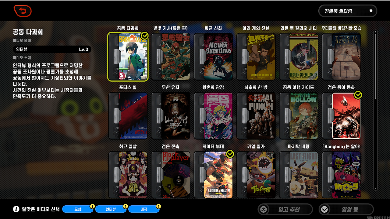 필터링 혹은 비디오 선택을 통해서 비디오를 찾을 수도 있지만
