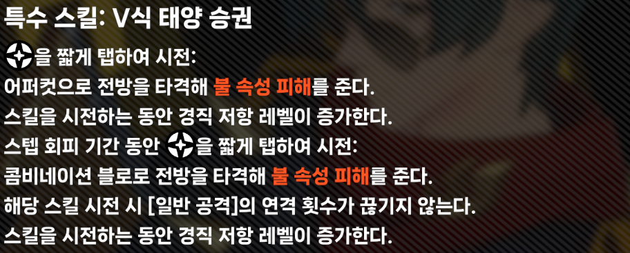 대전 격투 게임을 저격하고 나온 만큼, 특수 스킬 사용 시 평타 콤보와 이어지도록 설정되어 있습니다. 평타+스킬 하면서 평타와 동일하게 홀드로 콤보 이어가면 됩니다. 강화 특수 스킬 모아서 속성 데미지 더 주는거 보다 일반 특수 스킬로 콤보를 더 자주 쓰는게 이득입니다.