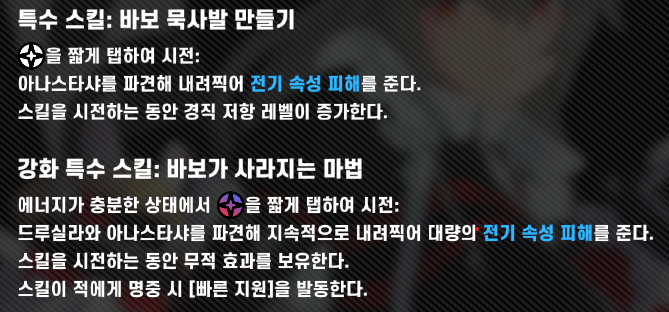 강화 특수 스킬이 사용 가능한 타이밍인지 체크하면서 콤보를 사용하는게 매우 중요합니다.